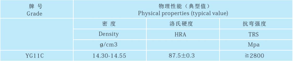 工程及盾构机用硬质合金牌号、性能及推荐用途